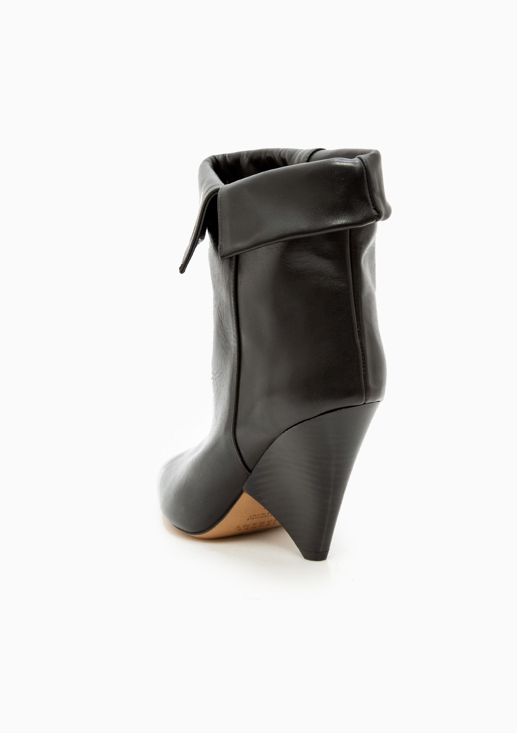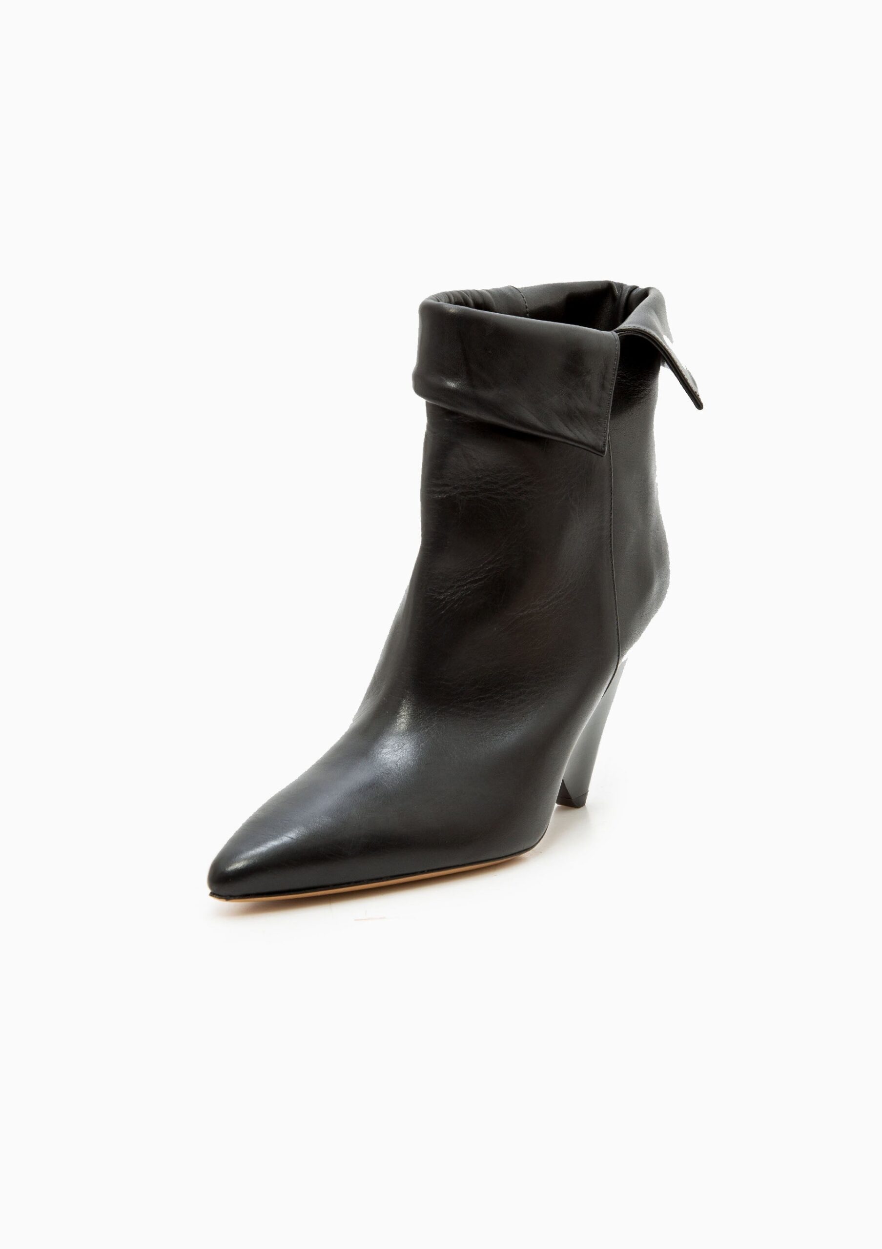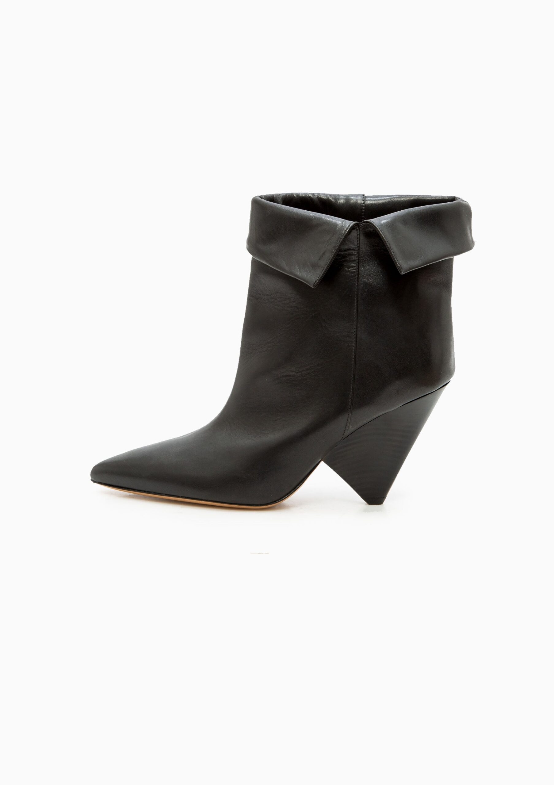 The Lulya boot from Isabel Marant features a pointed toe and tructural wooden heel with a folder design.